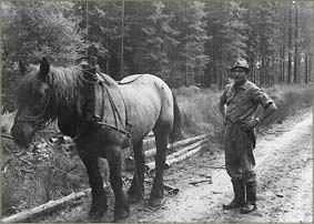 Von diesem Tag an war Peter Schmitz mit seinen besonders waldtauglichen Kaltblütern als Holzrücker tätig. Dieser Beruf war anstrengend und schweißtreibend, denn Peter Schmitz zog mit seinen Pferden die Baumstämme aus den unzugänglichgen Waldstücken in denen sie geschlagen worden waren, zu den Waldstraßen wo sie schlußendlich abtransportiert werden konnten.