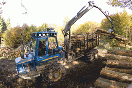 - Beim Rücken von Kurzholz setzen wir momentan vier Forwarder ein. Sie sind zweites Glied in der hochtechnisierten Aufarbeitungskette. Das Rücken von Kurzholz gilt als bestandesschohnend, Rückeschäden am verbleibenden Bestand außerhalb der Rückegasse sind nahezu ausgeschlossen. Verjüngungsfehmel und schützenswerte Bestandesteile werden geschohnt.